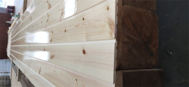 2、護(hù)墻板:內(nèi)外墻板大面積使用,室外厚度一般在15-16mm,寬度120-150mm,室內(nèi)比室外尺寸要小些。