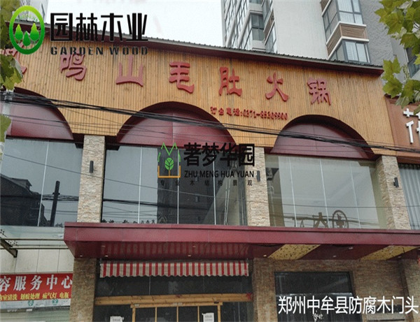 防腐木店面門頭 免費(fèi)量尺,設(shè)計(jì),出圖;集環(huán)保與美觀一體,木材性能穩(wěn)定,承諾按期交工防腐木門樓 鄭州華祥木業(yè)有限公司您身邊防腐木私人訂制專家 ,質(zhì)量上乘。